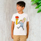 Ein Mann, der ein Saxophon spielt, das im Stil eines Cartoon gemacht wurde. Dieses Design sieht auf diesem Boys T - Shirt wirklich effektiv aus