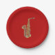Entwurf mit Abbildung von Saxophon auf rotem Hintergrund; elegantes, einfaches Jazzmusikinstrument