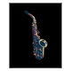Design mit Illustration von Saxophon auf schwarzem Hintergrund; elegantes, einfaches Jazz-Musikinstrumentendesign