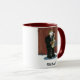 Eine Tasse für einen Saxspieler personalisiert mit einem Namen unterhalb des Bildes. Das Bild und der Name sind auf beiden Seiten. Sie können die Größe, die Art oder die Farbe der Tasse ändern.