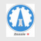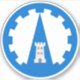 "Argent, auf einem Haufen umgedreht durch Azurblau ein Turmgewehr, innerhalb eines Bordurms umgekippt Azurblau."