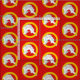 "Gules, ein Delphin, der durch eine Annullierung oder eine Prägung von Naivität in Argentinien verkörperte." Allover-Muster des Abzeichens für die Baronie des Fernen Westens in der Gesellschaft für kreativen Anachronismus.