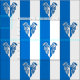 "Je heller und argent, eine Kalamarie hat sich ausgetauscht." Allover Muster des Abzeichens der Bevölkerung für die Baronie von Ruantallan in der Gesellschaft für kreativen Anachronismus.