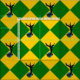 "Pro salreifen oder vert, das Bein eines Adlers gelöscht wird, mit einem Schritt-Schnitt Edelsteinazur." Allover-Muster des Abzeichens für das Reich des Talonvals in der Gesellschaft für kreativen Anachronismus.