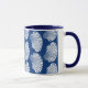 Tasse in einem Blockdruckmuster, basierend auf einer Jakobsmuschel-Muschel, in Weiß auf Kobalt-/Marineblau