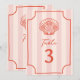 Rote Strickkunst-Illustration über rosa Streifen Hintergrund mit rotem Text und handgezeichnetem Rahmen.