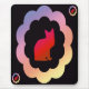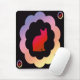 Dieses Design wurde mit Fotoshop gemacht. Der Hintergrund ist ein schwarzer Rahmen mit einem Ausschnitt, der einen farbigen Regenbogen zeigt. Ein schwarzer Kreis mit einer geschmolzenen Kante zeigt eine Katze, die mit einem roten Farbton entworfen wurde. Dieses Mauspad wird angezeigt, damit Sie es anpassen können.