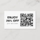 Machen Sie es Ihren Kunden einfach, mit dieser QR Code Rabattkarte auf Ihre Website zurückzukehren! Erstellen und hochladen Sie Ihren eigenen QR-Code, um ihn zu Ihrem eigenen zu machen.