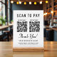 Create a polished, modern checkout experience with this elegant Scan to Pay acrylic tabletop sign. Designed with a white acrylic panel and solid wooden base, this sign adds a professional, upscale look to countertops, reception desks, and checkout stations while making it easy for customers to pay instantly. The clean layout showcases a clear scan to pay call-to-action and 2 QR codes for popular payment apps. Add your business name, address, phone number, website or other text to keep your business information visible and accessible. Ideal for boutiques, salons, cafés, spas, pop-ups, studios, and service-based businesses, this sturdy acrylic sign is both functional and stylish. It encourages fast, contactless payments while reinforcing your brand’s professionalism and attention to detail.