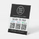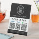Einfaches modernes Schwarz-Weiß-Tischschild für Ihr Geschäft mit Venmo-, Paypal- und CashApp QR-Codes für Kunden zum Scannen von Zahlungen. Fügen Sie Ihr Logo, QR-Codes und Firmennamen, Telefonnummer und Straßenanschrift oder andere Informationen hinzu.