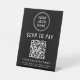 Einfaches modernes schwarzes Tischschild für Ihr Unternehmen mit QR-Code für Kunden, die nach Zahlungen suchen. Fügen Sie Ihr Logo, Ihren Firmennamen, QR-Code, Ihre Telefonnummer und Ihre Straßenadresse in einfacher weißer Schrift hinzu.