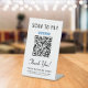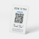 Einfaches modernes Tischschild für Ihr Unternehmen mit einem Venmo QR Code für Kunden, um nach Bezahlung zu suchen. Fügen Sie Ihren QR-Code, Firmennamen, Telefonnummer und Straßenadresse in einfacher Typografie hinzu.