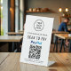 Einfaches modernes Tischschild für Ihr Unternehmen mit PayPal QR Code für Kunden, die nach Zahlungen suchen. Fügen Sie Ihr Logo, QR-Code und Firmenname, Telefonnummer und Straßenadresse in einfacher Typografie hinzu.
