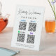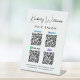 Chic Custom Podestal Tabletop-Zeichen für Ihr Unternehmen mit Ihrem Namen oder Ihrer Marke in einem stilvollen Signaturskript und Venmo, Paypal, Zelle und CashApp QR Codes für Kunden zu scannen nach Zahlungen. Laden Sie Ihre QR-Codes hoch und fügen Sie Ihre Kontaktdaten in sauberer, einfacher Schrift hinzu.