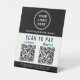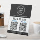 Einfaches, modernes Schild mit schwarz-weiß Tischplatte für Ihr Geschäft mit Venmo- und Paypal QR-Codes für Kunden, die nach Zahlungen suchen. Fügen Sie Ihr Logo, QR-Codes und Firmennamen, Telefonnummer, Straßenadresse oder andere Informationen in einfacher Typografie hinzu.