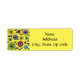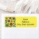 Diese Rücksendeadressen-Aufkleber haben ein skandinavisches Design von Blume aus Kreisen, Ovalen und Halbkreisen mit Sternexplosionen auf ihnen und Blätter in Winkeln, Gelb, Grün, Türkis, Magenta, Rost und Blau.