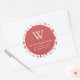 Dieser moderne Aufkleber mit Rücksendeadresse ist mit einem staubigen Rose-Kreis auf einem skandinavisch inspirierten Muster aus rosa, Rose und bordeauxfarbenen immergrünen Pinienbäumen auf weißem Hintergrund versehen. Personalisieren Sie das Design mit Ihrem Monogramm Initial- und Familiennamen in einem Schriftart mit weißen Serifen, mit Ihrer Adresse unten in Serif.