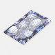 Decorative Easter eggs with elegant floral motifs in rich blue and white tones.