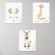 Scandinavian Minimal Safari Nursery Wall Art Set • Giraffe Zebra Elephant • Custom Name & Quote Baby Room Decor
