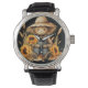 Uhr, Vintage Männeruhr mit schwarzem Lederarmband