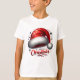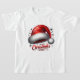 A vivid red Santa hat with plush white trim and twinkling snowflakes; bold festive typography adds warmth, ideal for holiday apparel, gifts, and seasonal home goods.