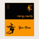 Folded business card or personal call card in orange and black background with a classic scary flying witch. On the back side of the card, the colors are reversed. It is easy to personalize both sides with the details of your own witch or magic business. Do not forget to add your own URL to get your winning QR code. Clip art from Zazzle Fonts composition by Alma Wad It comes in 25 packs.