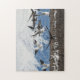Ein spektakuläres Bild der kanadischen Gänse (Branta canadensis) und der Schneegänse (Chen caerulescens), die am Alaska-Turnwiederum-Arm mit den atemberaubenden Kenai-Bergen im Hintergrund in den Himmel donnern. von Ted Raynor