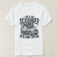 Dieser weiße T - Shirt zeigt eine Grafik eines grauen Lastwagens mit fünf Cartoon-Waschbären, die oben sitzen. Der Text "GET IN SCAVENGER" ist über dem LKW und "WIR WERDEN TÜRZEN" unten. Sterne sind im Design verstreut. Dieses Shirt ist perfekt für alle, die Lieben Thrifting und Scavenging.