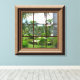 Il présente une fenêtre encadrée en faux bois donnant sur le paysage tropical. Le cadre continue autour des côtés de la toile. Visualisez des images supplémentaires pour un regard plus attentif.