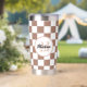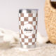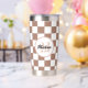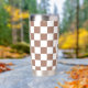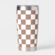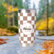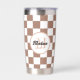 Schachbrett Quadrate Mocha-braunes Retro Monogramm Thermobecher