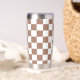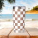 Schachbrett Quadrate mocha braunes weißes Retro Monogramm Insulated Tumbler. Gekreuztes geometrisches Retromuster Wasserflasche. Praktisches Geschenk für aktive Menschen. Cooles geometrisches rechteckiges Muster in Retro. Vintages Fliesen modernes Schachbrett.