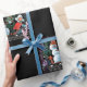 Weihnachtsschachtel Black Wrapping Paper Schwarzer Hintergrund und Szenen wie ein Schachbrett angeordnet, ein einzigartiges Papier von Vintagen Illustrationen