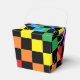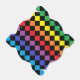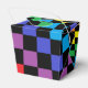 Abstrakte Digitalkunst von schwarz- und regenbogenfarbenen Quadraten in karierten Formationen.