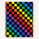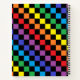 Abstrakte Digitalkunst von schwarz- und regenbogenfarbenen Quadraten in karierten Formationen.