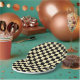 Abstrakte digitale Kunst von beigen und schwarzen Quadraten in einer karierten Bildung.