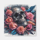 Intriziate Kunstwerke mit einem wunderschön detaillierten Schädel, der mit Rose, Federn und einem lebendigen Bluebird verziert ist und den Kontrast zwischen Leben, Tod, Schönheit und Wandel in einer eleganten künstlerischen Anordnung symbolisiert.