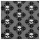 Stoff zu Halloween in Grau, Schwarz und Weiß. Das ist ein elegantes Schädel-Damast-Muster.