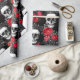 Schädelkronen und verblaßte Rote Rosen auf einem Geschenkpapier