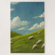 Eine friedliche Szene des Schafweidens auf einem grasbewachsenen Hügel.