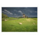 Schafe mit Windmühlen unter dunklen Wolken Fotodruck