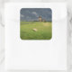 Schafe mit Windmühlen unter dunklen Wolken Quadratischer Aufkleber