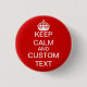 Entwerfen Sie Ihre Selbst "behalten Ruhe und weitermachen" Knopf unter Verwendung dieser einfachen Schablone und wie-zu den Anweisungen. Inspiriert durch einen britischen Plakatslogan der Antike WWII, "behalten Sie Ruhe" Entwürfe sind sehr trendy und populär. Verwenden Sie "personifizieren es" Feld, um es Ihre Selbst leicht zu machen. Sogar kann die weiße Krone "geändert werden" wenn Sie Ihre eigene Grafik haben. Justieren Sie die Textfelder, um zu sagen, was auch immer Sie möchten: Ihr Lieblingshobby, Beruf oder lustiges Sprichwort. Wenn Sie getan werden, wenn Sie machen müssen, zwickt mehr oder bestimmt die Größe neu und verschiebt Ihr Bild oder Text auf Sitz, Klicken "besonders anfertigen ihn" und neu ordnen jedoch Sie möchte (von dort, können Sie die rote Hintergrundfarbe auch ändern). Verfügbar auf mehr Einzelteilen in unserem Speicher.