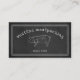 Rustikale Visitenkarte mit einem Schweineschlitten-/ Abteilungsdiagramm Schweinelogo und weißem Text auf einer schwarzen Tafel. Geeignete Visitenkarte für das Fleischpacker-Geschäft, Grillen Restaurant, Metzger und Schlachthof.