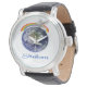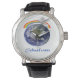 Uhr, Vintage Männeruhr mit schwarzem Lederarmband