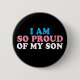 Ich bin so stolz auf meinen Transgender-Sohn. Eine schöne, transgender Elternstütze-Taste für eine Mutter eines Transsexuellen, die in Blau, Rosa und Weiß der Stolzflagge geschrieben ist. Eine tolle Möglichkeit, Ihrem Kind zu zeigen, dass Sie es immer Liebe haben, nachdem es Ihnen von seinem Übergang erzählt hat.