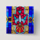 Ein Knopf mit einem Design aus einem der Glasfenster der Baptistkirche Greater Abyssinia in Cleveland, Ohio
