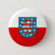 Round Button mit variantenreicher Flagge Thüringens; Design mit zwei horizontalen Bändern in Rot und Weiß, Emblem mit Löwe in der Mitte