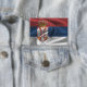 Knopf mit der Flagge Serbiens in gewelltem Stoffdesign. Dieses Design zeichnet sich durch die serbischen Fahnen-Farben und das Design mit einem wunderschönen, gewebten Materialeffekt aus. Dieses Flag-Design ist eine großartige Möglichkeit, Ihnen zu zeigen, dass Sie stolz sind Serb zu sein.