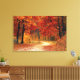 Eine landschaftliche Kies- und Sandstrasse durch einen wunderschönen Wald mit wunderschönen, schwarzen und kohlebewachsenen Baumstämmen, überragt von kräftigen Herbstblättern in Ruby, Gold und Zitrine!