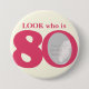 Feiern Sie einen 70. Geburtstag mit diesem Spaßblick, der das Abzeichen/der Knopf mit 80 Fotos ist. Personifizieren Sie dieses Alters-Abzeichen mit einer Fotografie des Geburtstagsmädchens. Große Idee für das Hinzufügen etwas Spaßes einem Geburtstags-Party. Verwendet werden, um Baby-Fotos oder andere Spaß- oder peinlicheFotos über Ihren Geburtstagsmädchen zu zeigen können 80 Jahre. Exklusiver Entwurf durch Sarah Trett.